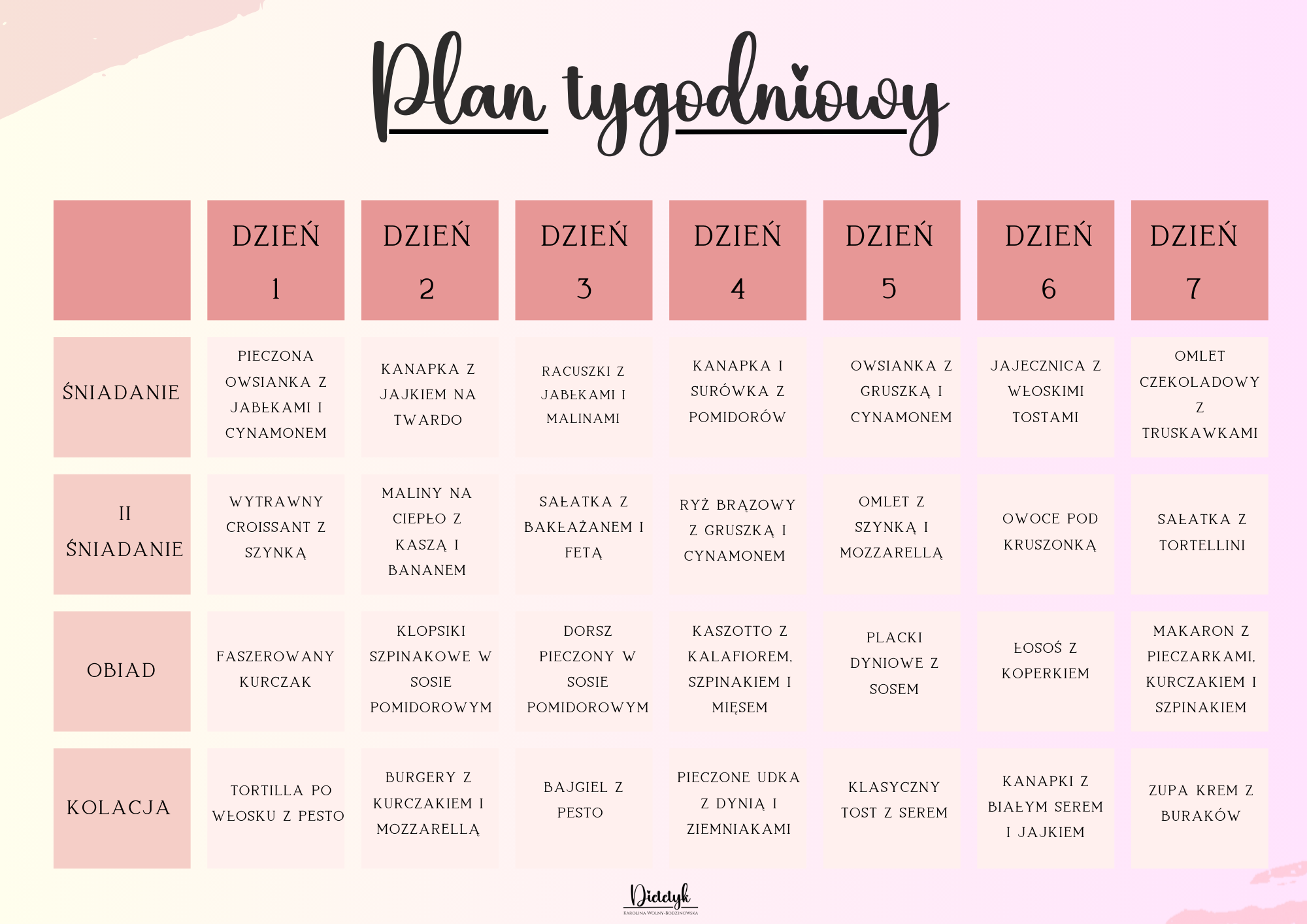 7-dniowy jadłospis.